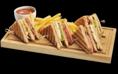 Frankfurter premium, filete broaster en trozos, papas fritas, cremas.